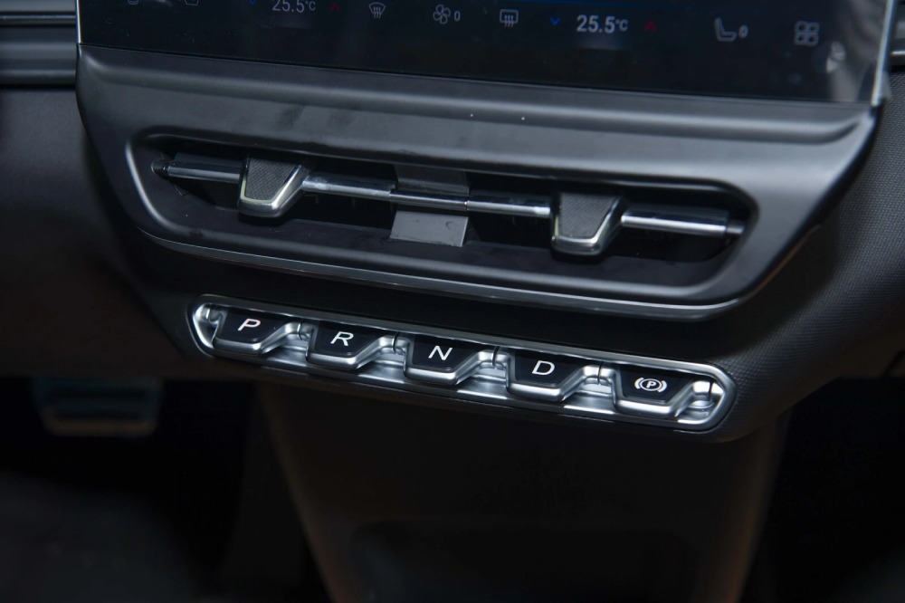 Cần số dạng nút bấm và phanh tay điện tử được đặt bên dưới màn hình đa thông tin