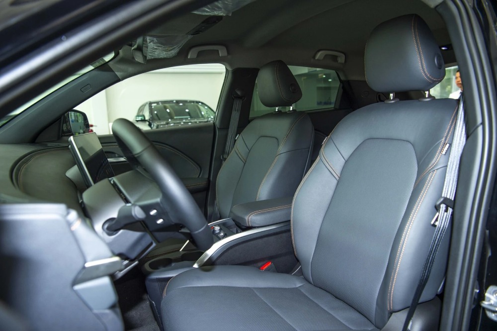 Nội thất xe được thiết kế đơn giản và hiện đại với màn hình giải trí cảm ứng 12,9 inch, màn hình hiển thị HUD, cần số điện tử, phanh tay điện tử.