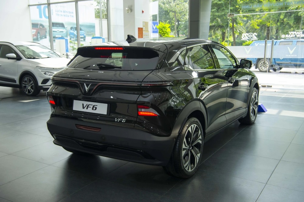 Ở mẫu xe điện VinFast VF6 trang bị cánh gió thể thao, ăng ten vây cá mập.